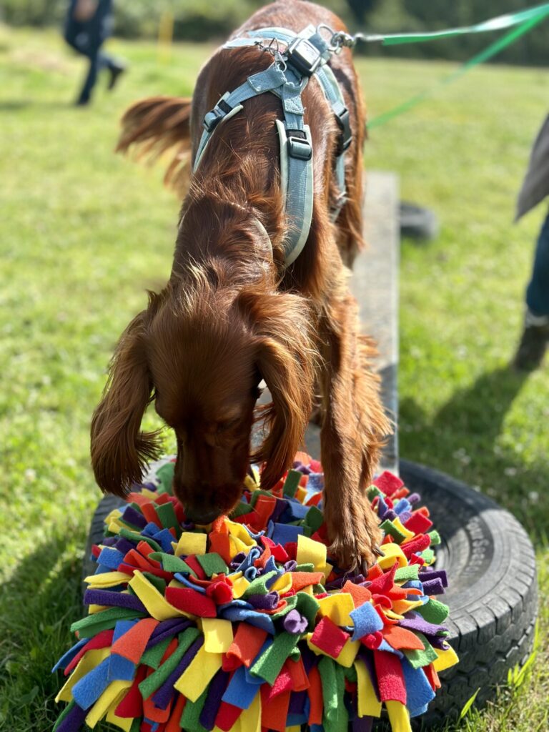 Dein Hund findet eigene Ideen, um mit Herausforderungen umzugehen. An den Geräten im Minddog-Kreis kann ganz unterschiedlich gearbeitet werden.